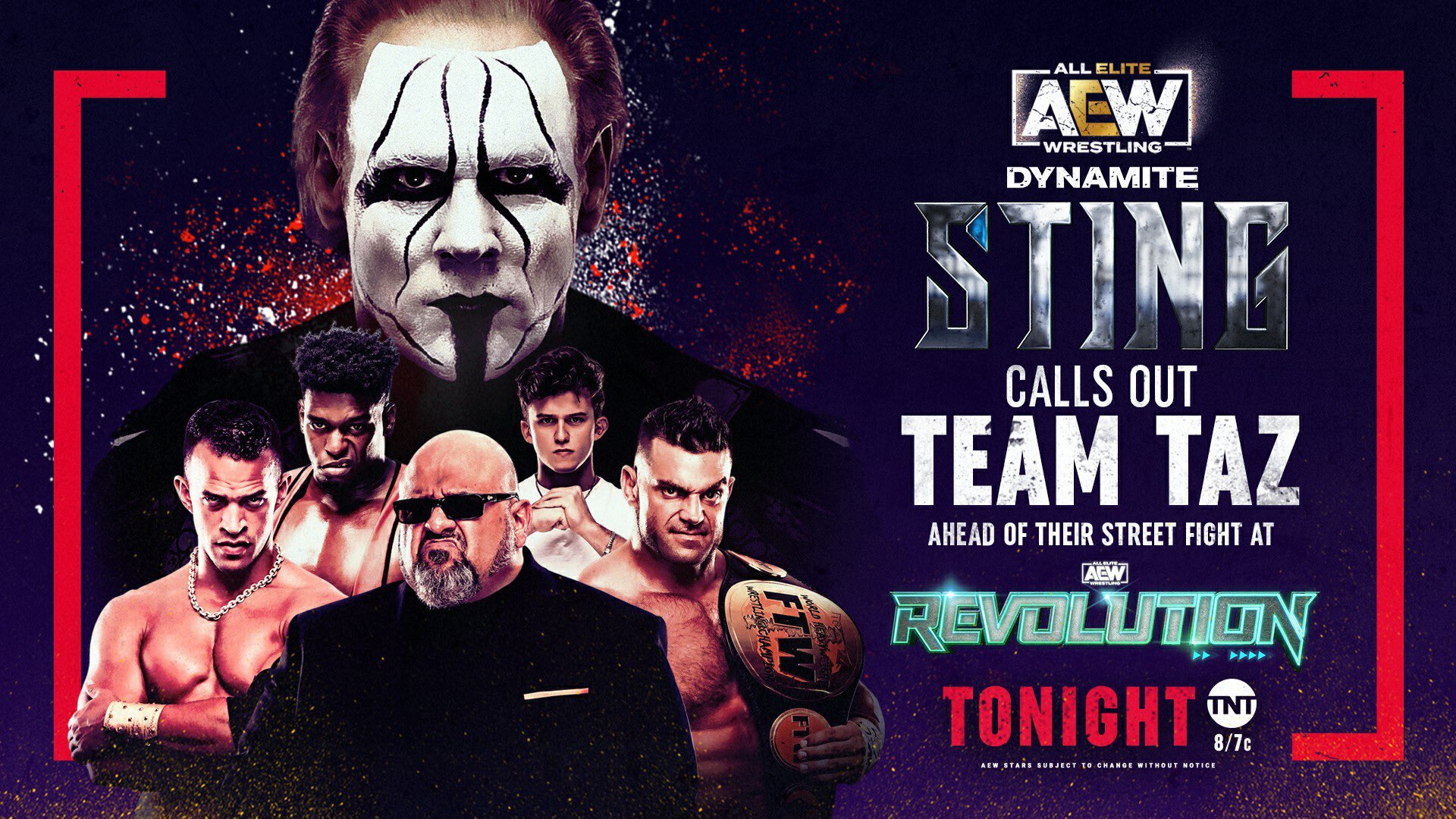 Taz, Brian Cage, and Hook, comes to the ring. Taz says that Hobbs and Starks aren’t here because of travel issues. Taz said they would get ahead of Sting and call him out even though Sting was supposed to call them out. Sting comes out alone, with a bat. Taz tells Sting he wouldn’t be out here alone if he didn’t bring the bat, and that Sting needs the bat to feel like a man. Sting proceeds to drop the bat and take off his coat, and starts a brawl, but the numbers immediately become a problem for Sting. He brawls with Cage in the corner at first and Hook goes after Sting from behind but Sting gets his hands on the bat and hits Hook in the gut, but Cage capitalizes with a big powerbomb on Sting which lays him out, as Team Taz stands tall.