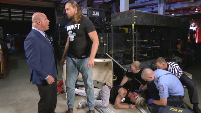 Backstage after Enzo had teamed with Big Show, they were confronted by Big Cass, who seemed to be fit and healthy, who questioned Big Show’s motives and whereabouts during the attacks.