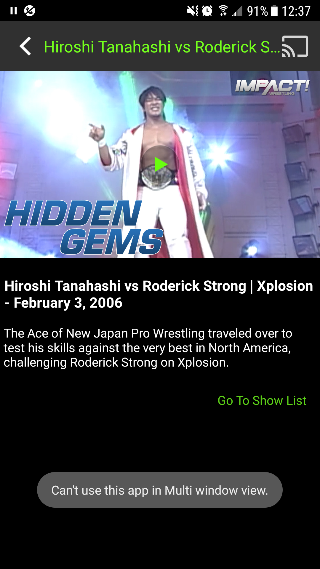 GWN have now started a new category called Hidden Gems. Two weeks ago Impact put out a question asking which match from the archives. Voters chose a TNA classic; Tanahashi vs. Roderick Strong. Well worth the look.