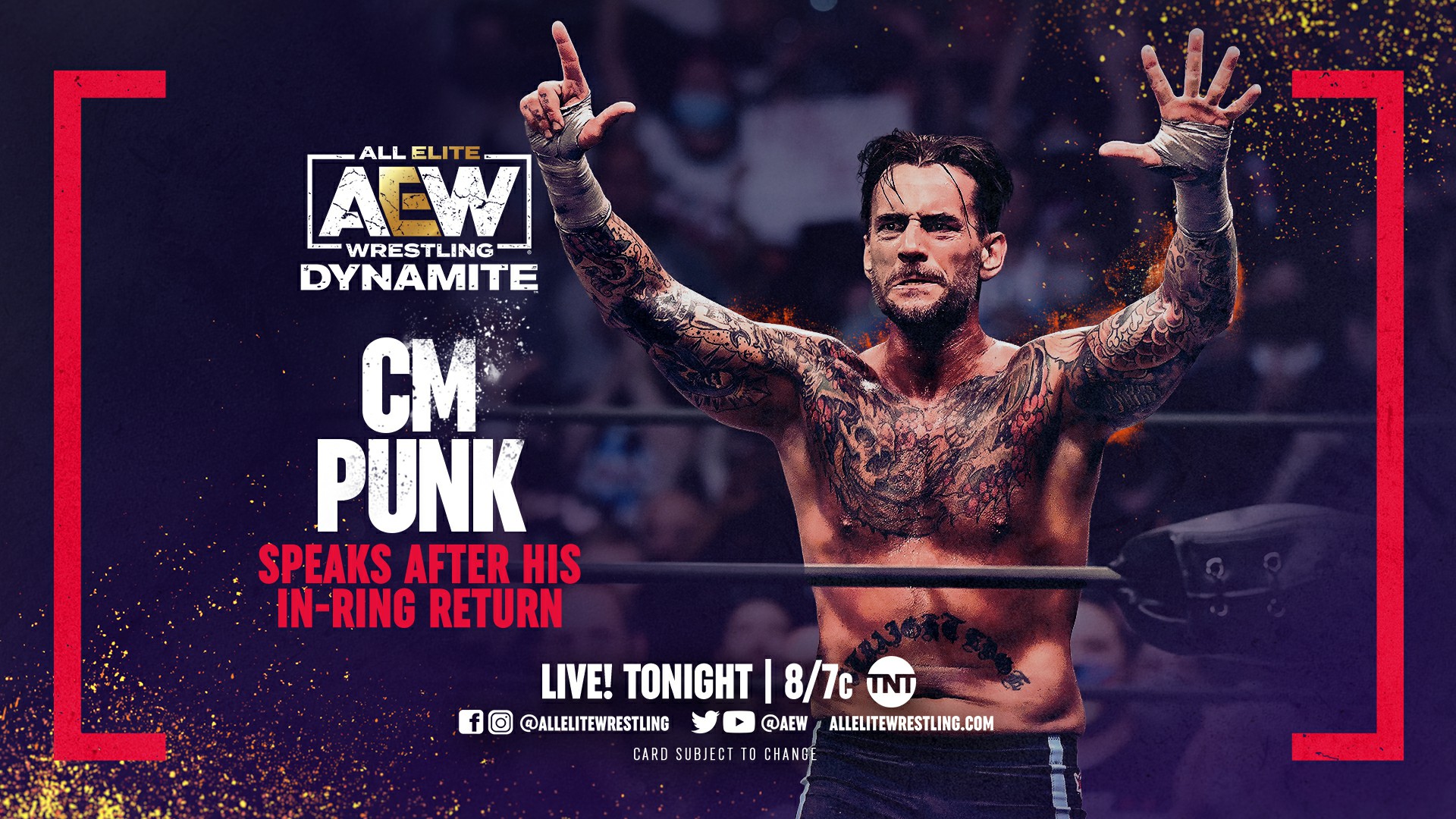 CM Punk makes his entrance and the crowd loses it and sings Cult of Personality. Punk teases jumping in the crowd but doesn’t, and wastes no time. Getting straight to the point. He thanks Darby Allin and Sting for the match on Sunday and he mentions how getting back in the ring after seven years is like riding a very violent bike.