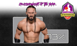 With 73% of the vote, Neville has been voted the Cruiserweight of the Year. Although Neville has had a controversial ending to 2017, and his WWE status is still unknown Neville has undoubtedly put not only the Cruiserweight Championship but 205Live and the whole cruiserweight division on the map. Its safe to say Neville has proved he is more than ‘just a cruiserweight’