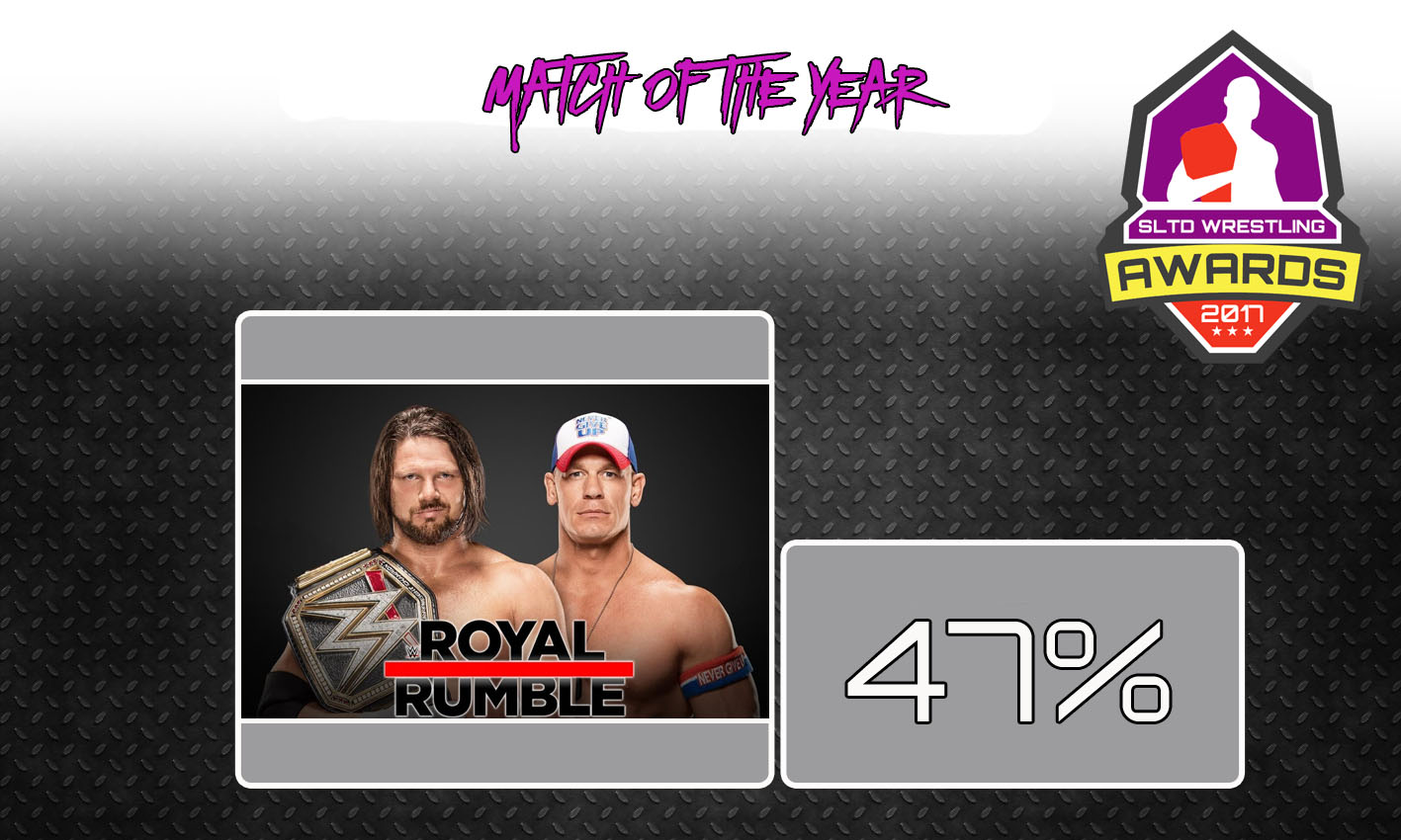 With 47% of the votes, AJ Styles vs John Cena for the WWE Championship at Royal Rumble was voted the Match of the Year. This is the second year in a row that Style vs Cena has been named Match of the Year. The rivalry that no one thought would ever happen has proved to be the most exciting set of matches that WWE has shown all year. With AJ Styles also being named Superstar of the Year, it’s no shock that his match against the face of the company would top the Match of the Year votes too. but can Styles vs Cena make it third time lucky in 2018?