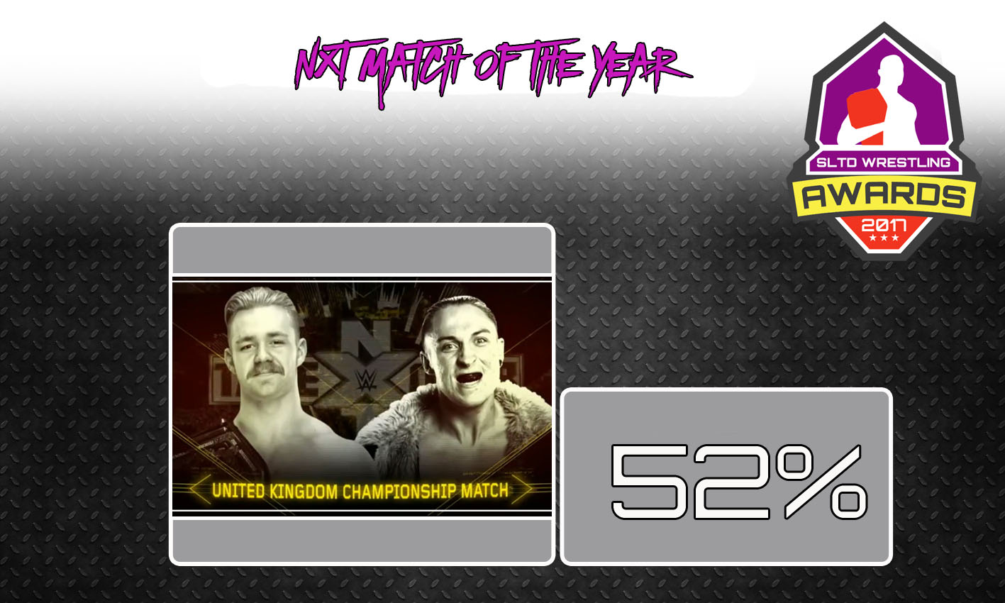 With 52% of the vote, Tyler Bate vs Pete Dunne for the United Kingdom Championship at NXT Takeover – Chicago has been voted the NXT Match of the Year. This shows just how good these two hungry young Britsh stars are that they are not even signed to NXT contracts and are still outshining the yellow brand’s roster. These two stars will undoubtedly be the faces of the UK Division in 2018 and beyond.