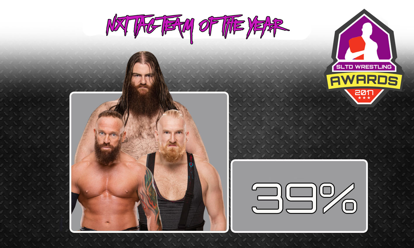 With 39% of the vote, SAnitY has been voted NXT Tag Team of the Year. With the leader of the faction being the 20-year ring veteran Eric Young, the twister Alexander Wolfe, the powerhouse Killian Dane and the mental Nikki Cross there is no denying that this team have run rough shot over all of 2017. They are former Tag Team Champions, but there is no doubt that can climb back to the top of the tag team mountain.
