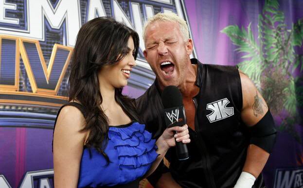The now global mega-star Kim Kardashian was once-upon-a-time the hostess for Wrestlemania. So did she get into some wild antics? Did she announce a special surprise match that got fans off their feet? Nope. She announced the attendance (all be it probably fake if we know WWE) and had a brief ‘back and forth (if you can call it that) with Mr Kennedy.