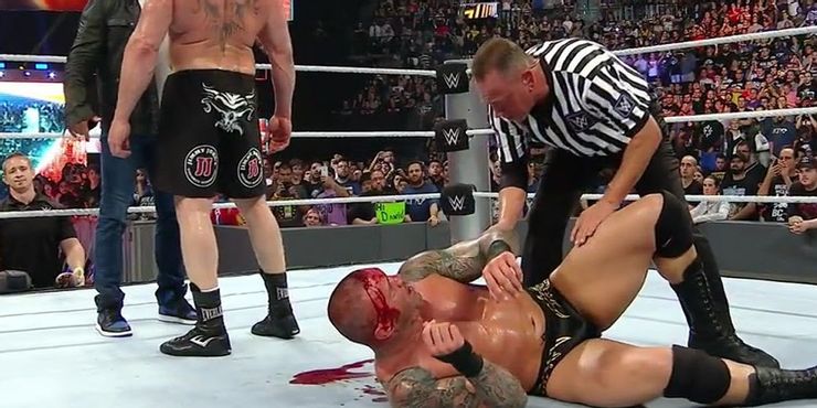 The Beast was meant to take on The Viper in the main event, and for a brief moment, he did. Lesnar proceeded to brawl with Orton and after some vicious elbow strikes to the head, Orton was left lying in a puddle of his own blood.