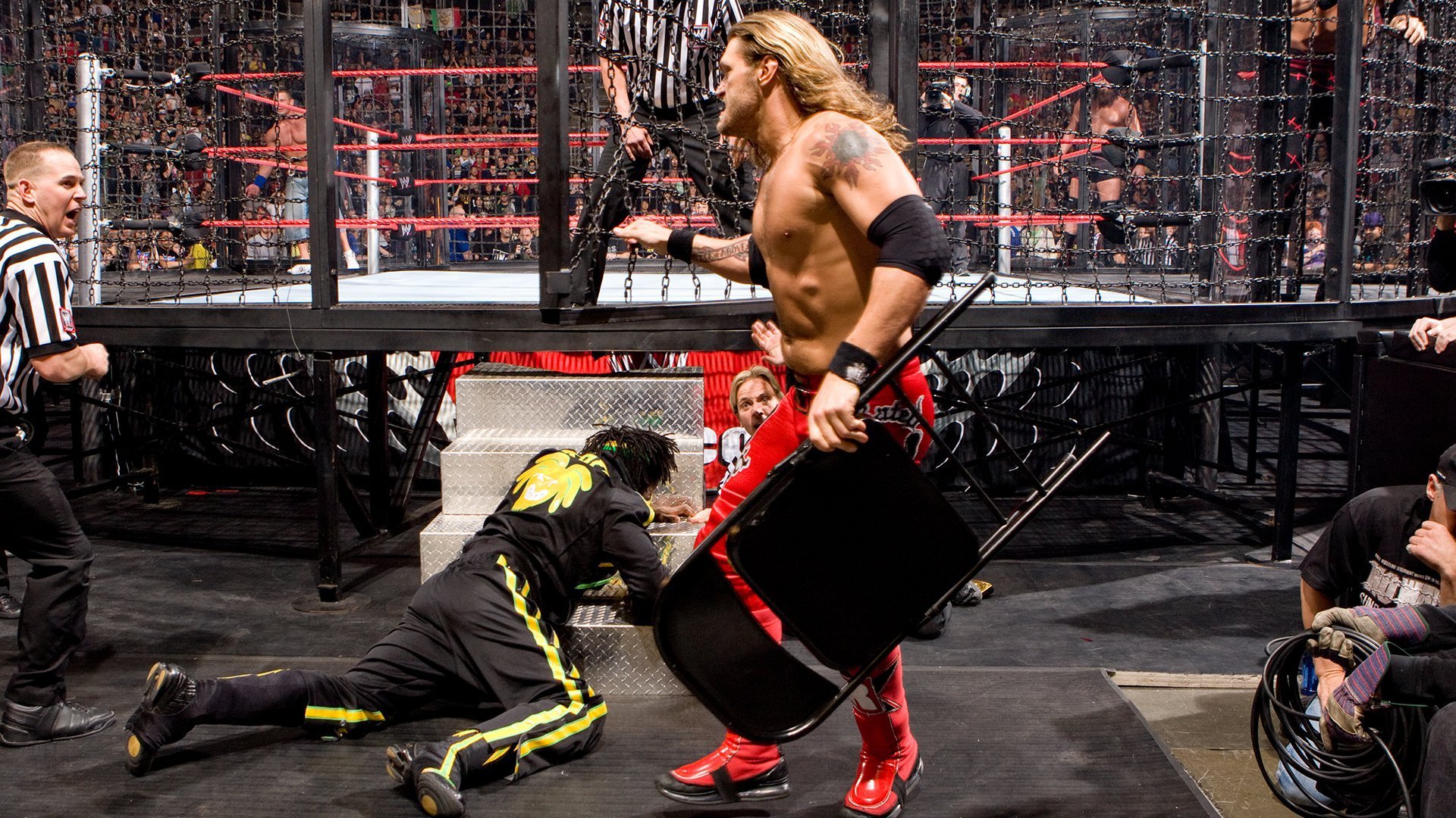 Back in 2009, Edge would have to defend his World Heavyweight Championship inside the structure but was eliminated early. Later in the night Edge would attack Kofi Kingston on the way to the ring, steal his spot, and win the WWE Championship.
