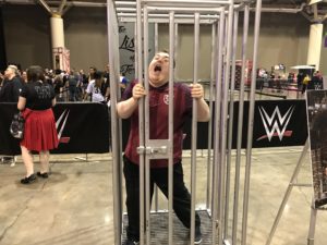 I even meet a few wrestlers, Shelton Benjamin and Chad Gable and Rhyno and Heath Slater inside the New Elimination Chamber (which I may have tripped on the loose canvas that they had)!